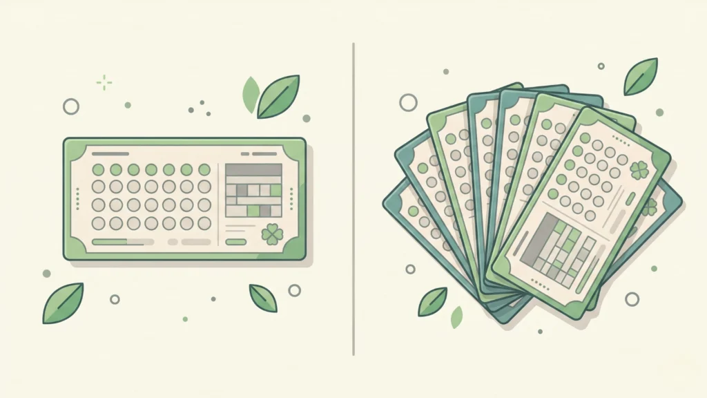 A aposta simples coloca você no sorteio com uma combinação. Os bolões de loteria, por outro lado, colocam você no sorteio com dezenas, centenas ou até milhares de combinações, dependendo do formato escolhido.