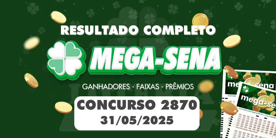 31/05/2025Resultado da Mega-Sena 2870 de Hoje (31/05/2025)Aqui você confere o resultado de hoje da Mega-Sena 2870. O sorteio é realizado pela Caixa Econômica Federal e ocorre no Espaço da Sorte em São […]