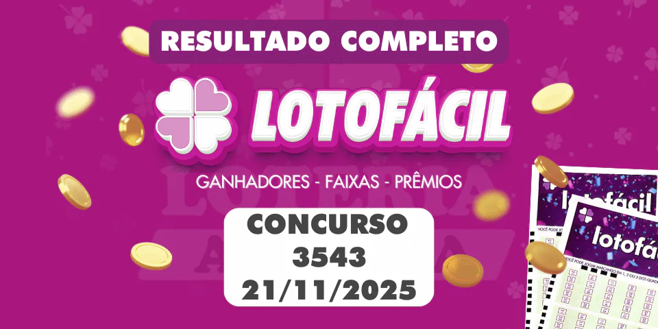 Confira hoje o Resultado da Lotofácil 3554: o sorteio acontece às 20h, direto do Espaço da Sorte, em São Paulo, com transmissão ao vivo pelo canal […]