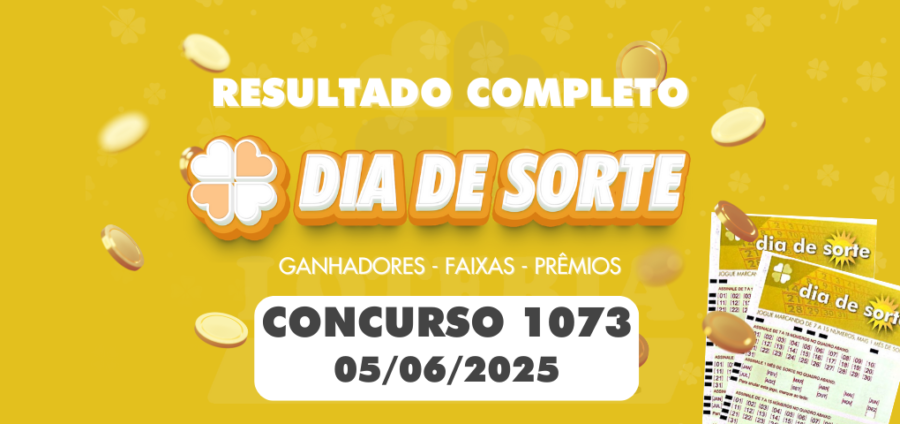 Aqui você confere o resultado de hoje da loteria Dia de Sorte 1073. O sorteio é realizado pela Caixa Econômica Federal e ocorre no Espaço da Sorte em São Paulo, às 20h, com transmissão ao vivo pelo canal das Loterias Caixa no Youtube.