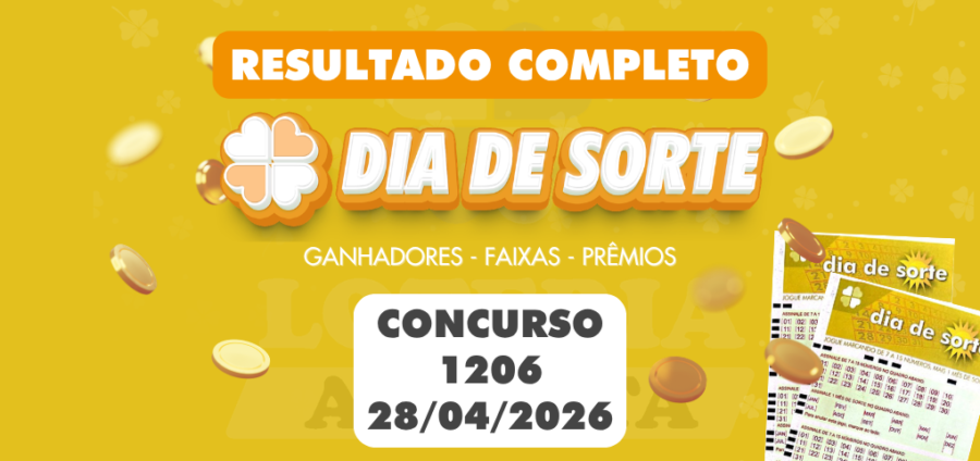 O Resultado da Dia de Sorte 1206 será conhecido às 21h, direto do Espaço da Sorte, em São Paulo, com transmissão ao vivo no canal das Loterias Caixa no YouTube.