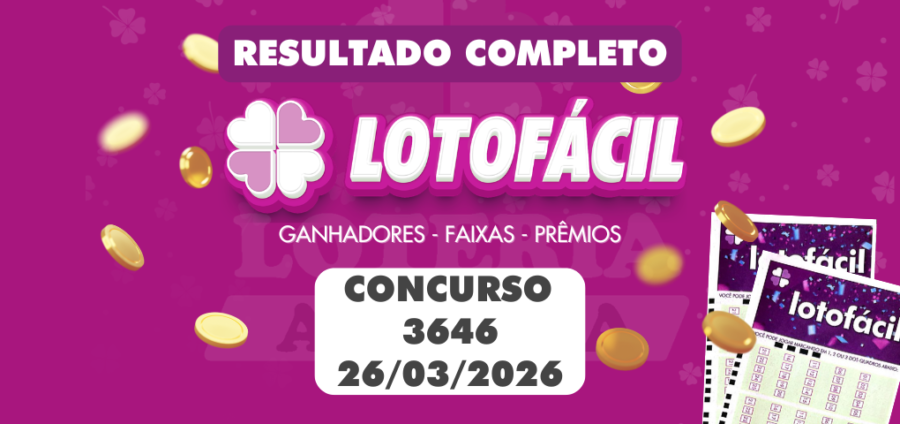 Resultado da Lotofácil 3646 de Hoje (26/03/2026)