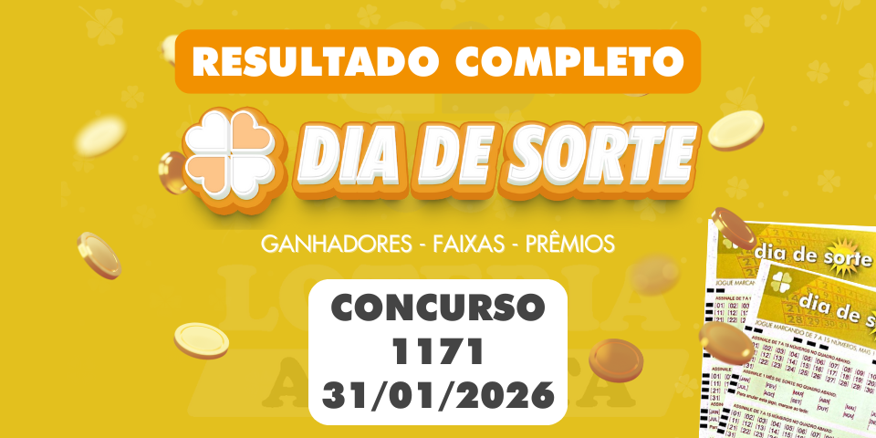 31/01/2026Resultado da Dia de Sorte 1171 de Hoje (31/01/2026)Acompanhe hoje o Resultado da Dia de Sorte 1171: o sorteio acontece às 21h, no Espaço da Sorte, em São Paulo, com transmissão ao vivo pelo […]
